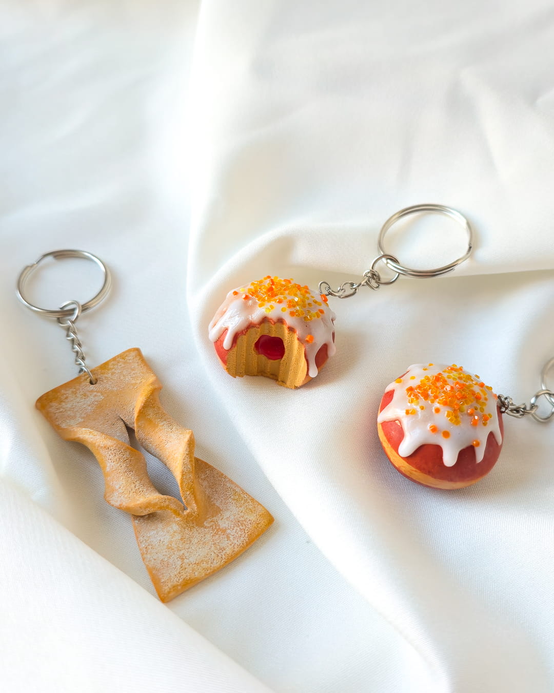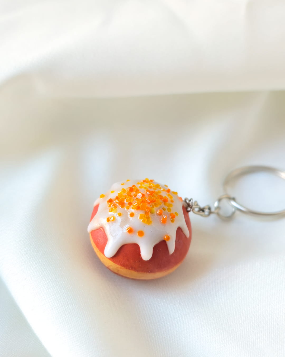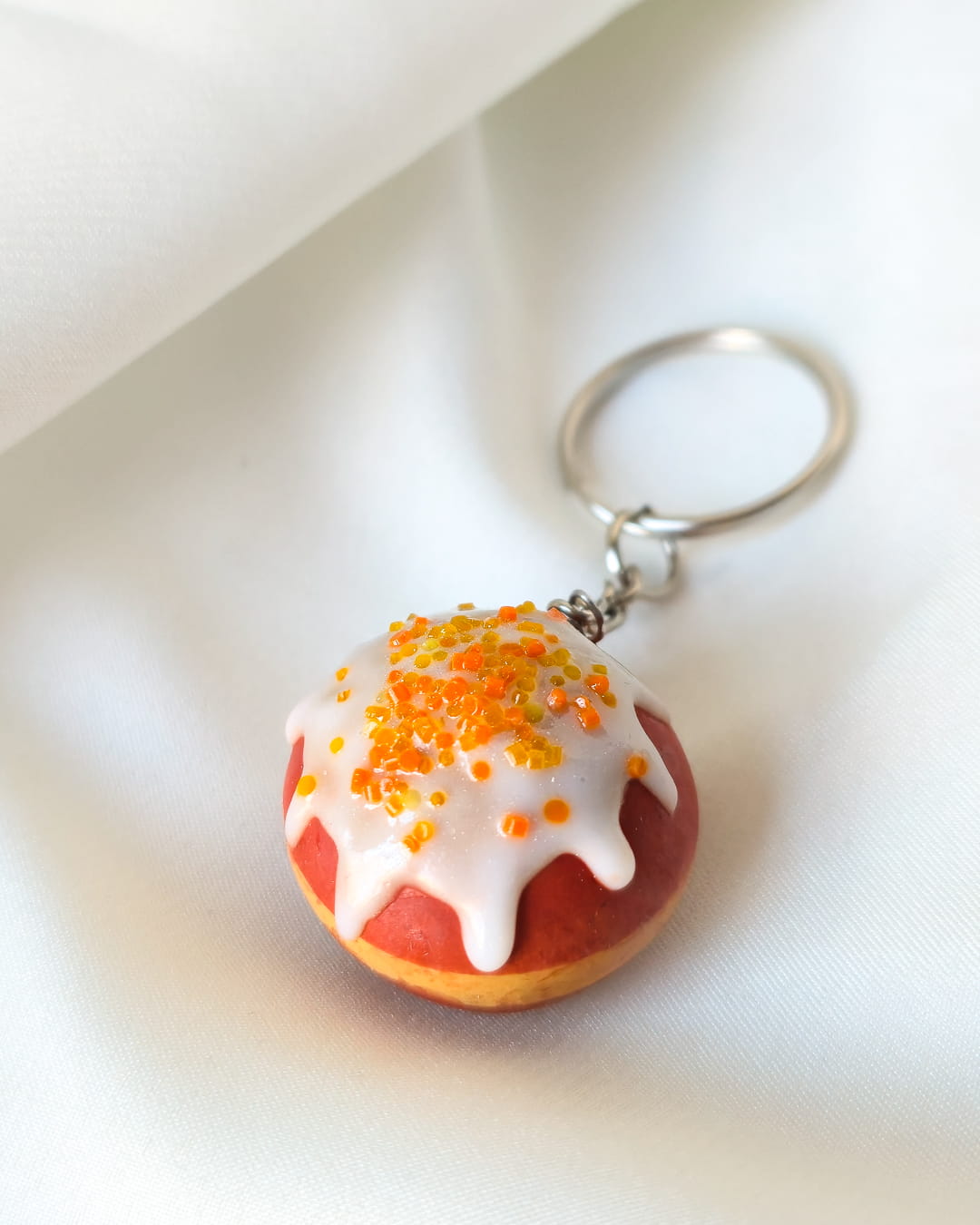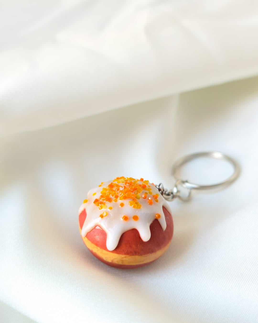 Zabawny brelok- tradycyjny pączek z lukrem - idealny dodatek nie tylko na tłusty czwartek i ostatki.