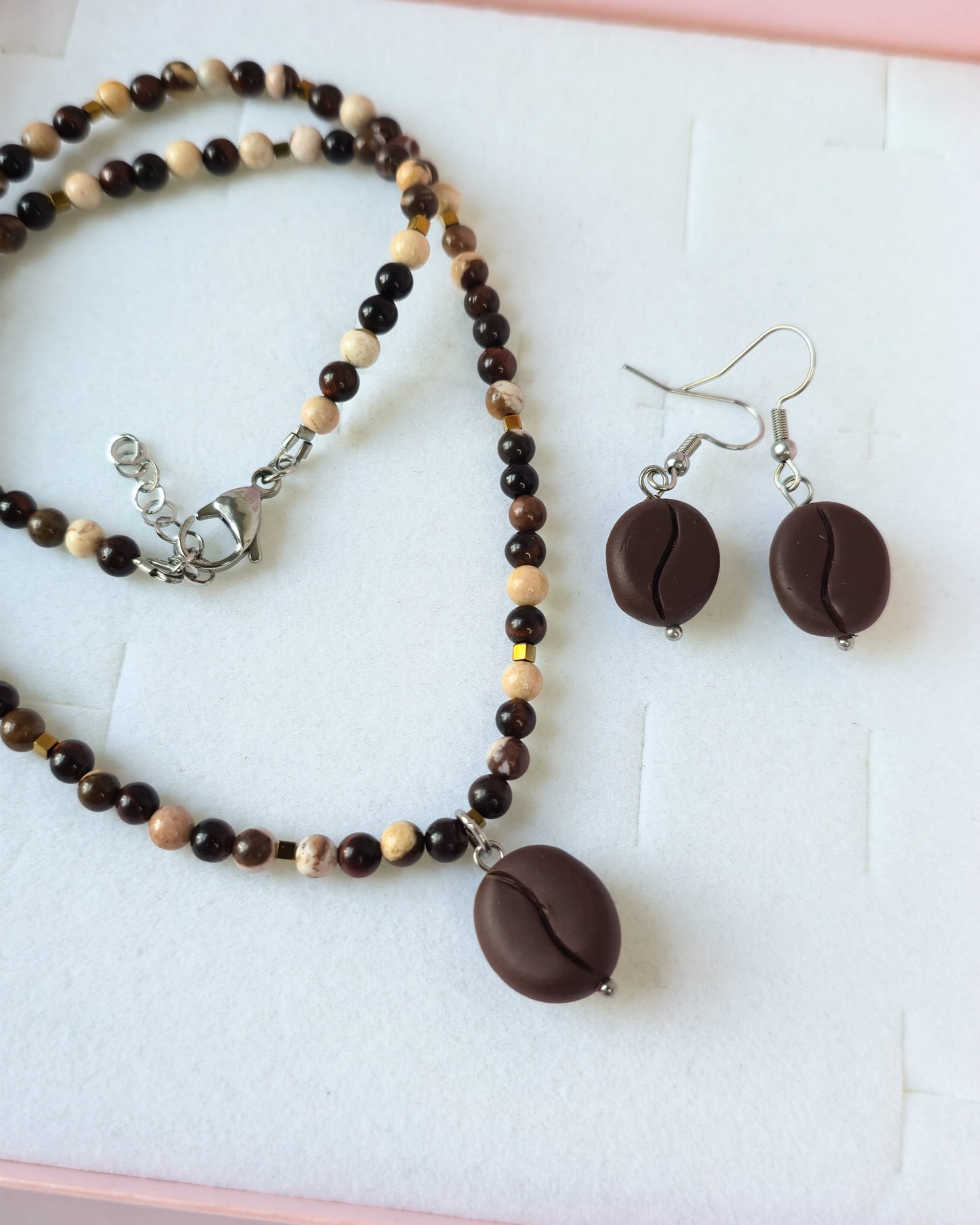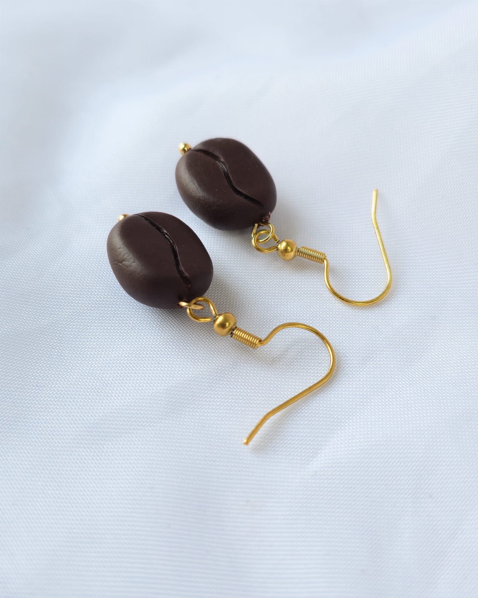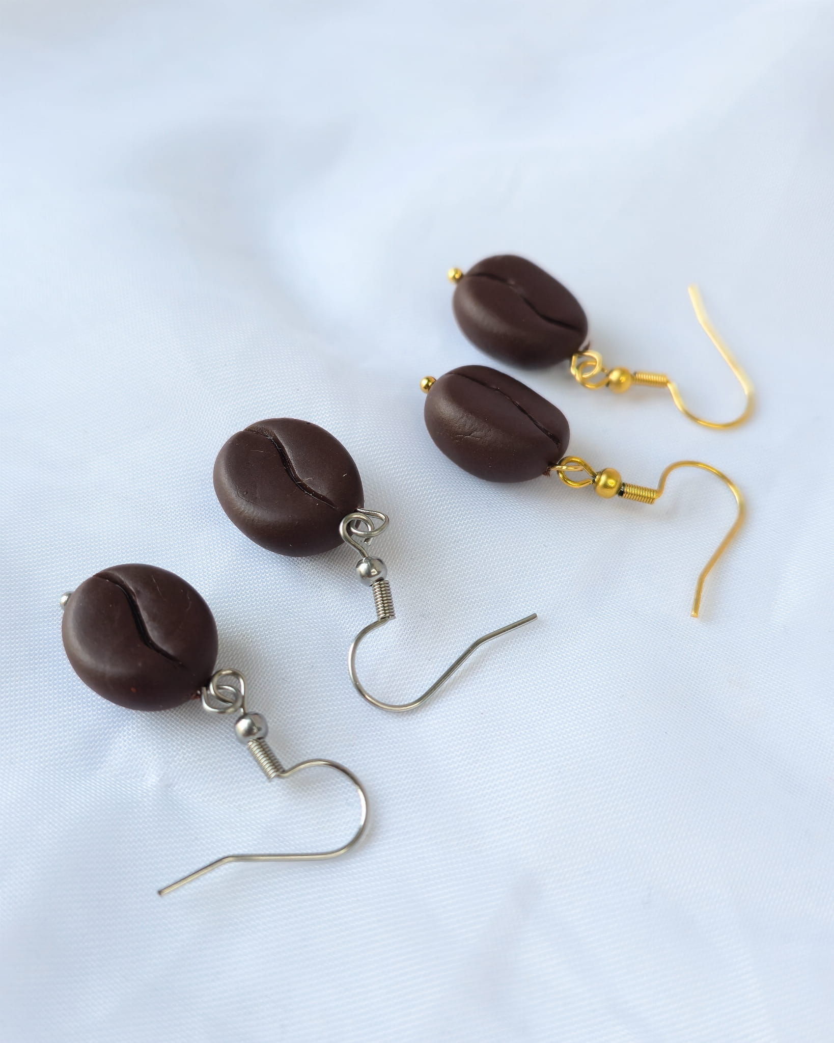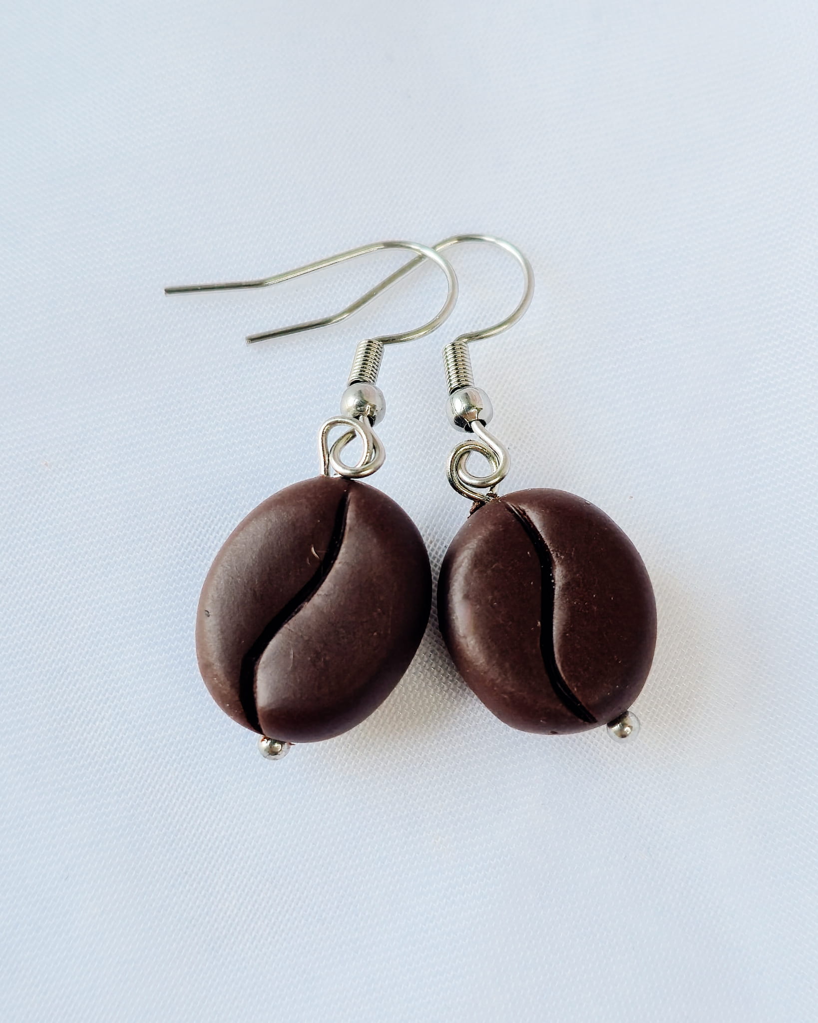 Ziarno kawy mają około 2x1,2cm. Kolczyki są bardzo lekkie, do każdej pary dodaję sylikonowe zatyczki, dzięki którym kolczyki nie spadną z uszu w trakcie noszenia.