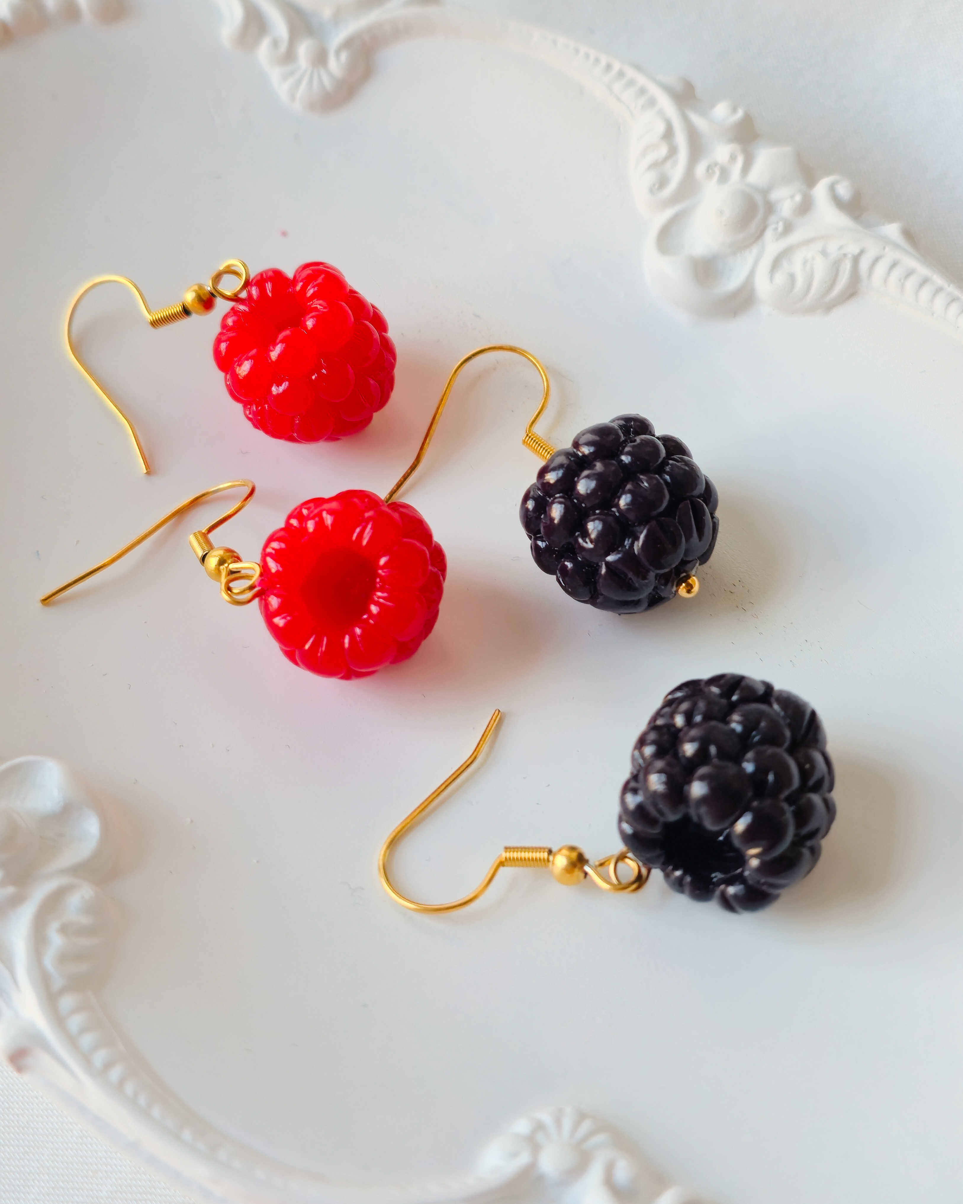 Te kolczyki wyglądają tak realistycznie, że aż chce się po nie sięgnąć jak po prawdziwą malinę! Trudno im się oprzeć — są słodkie, efektowne i od razu przyciągają uwagę. To idealny, drobny prezent, który wywoła uśmiech od razu po otwarciu pudełeczka.