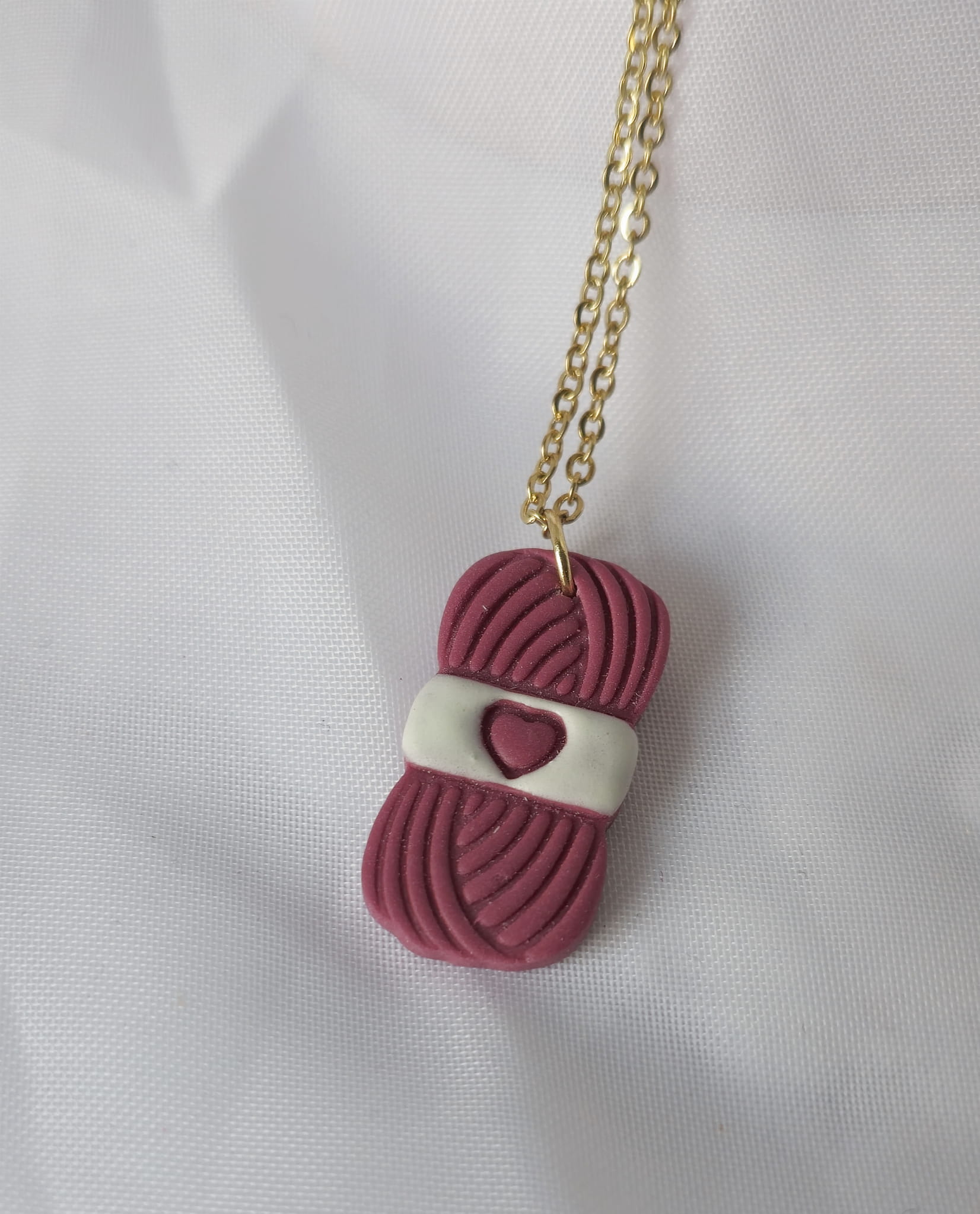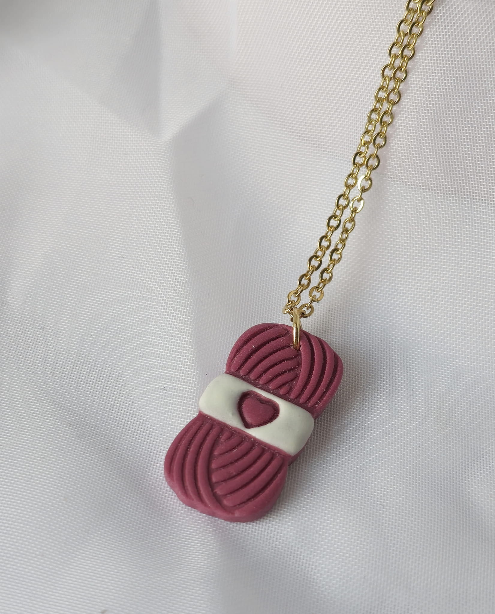 Uroczy naszyjnik - motek wełny z serduszkiem. Idealny pomysł na prezent dla dziewiarki - miłośniczki szydełka lub robienia na drutach.