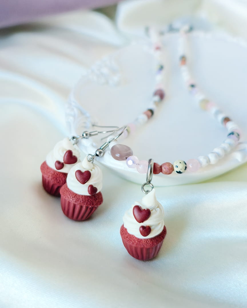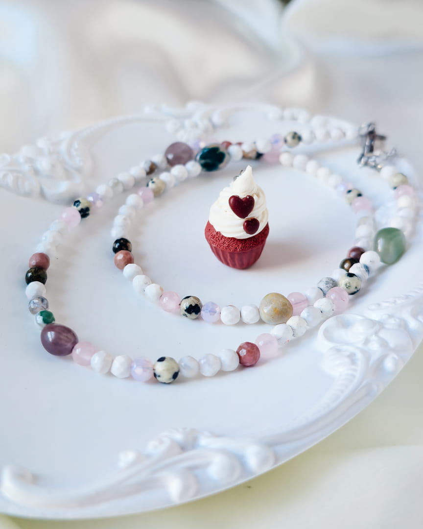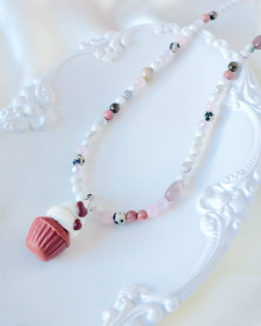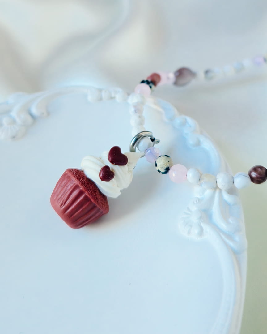 Naszyjnik z kamieni z babeczką red velvet