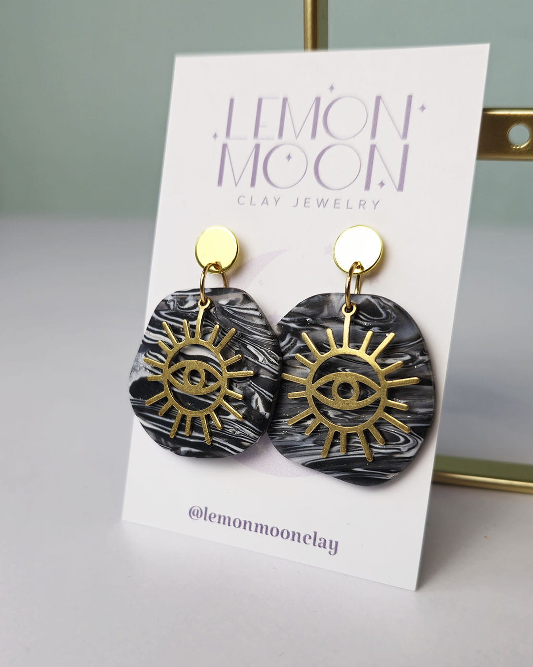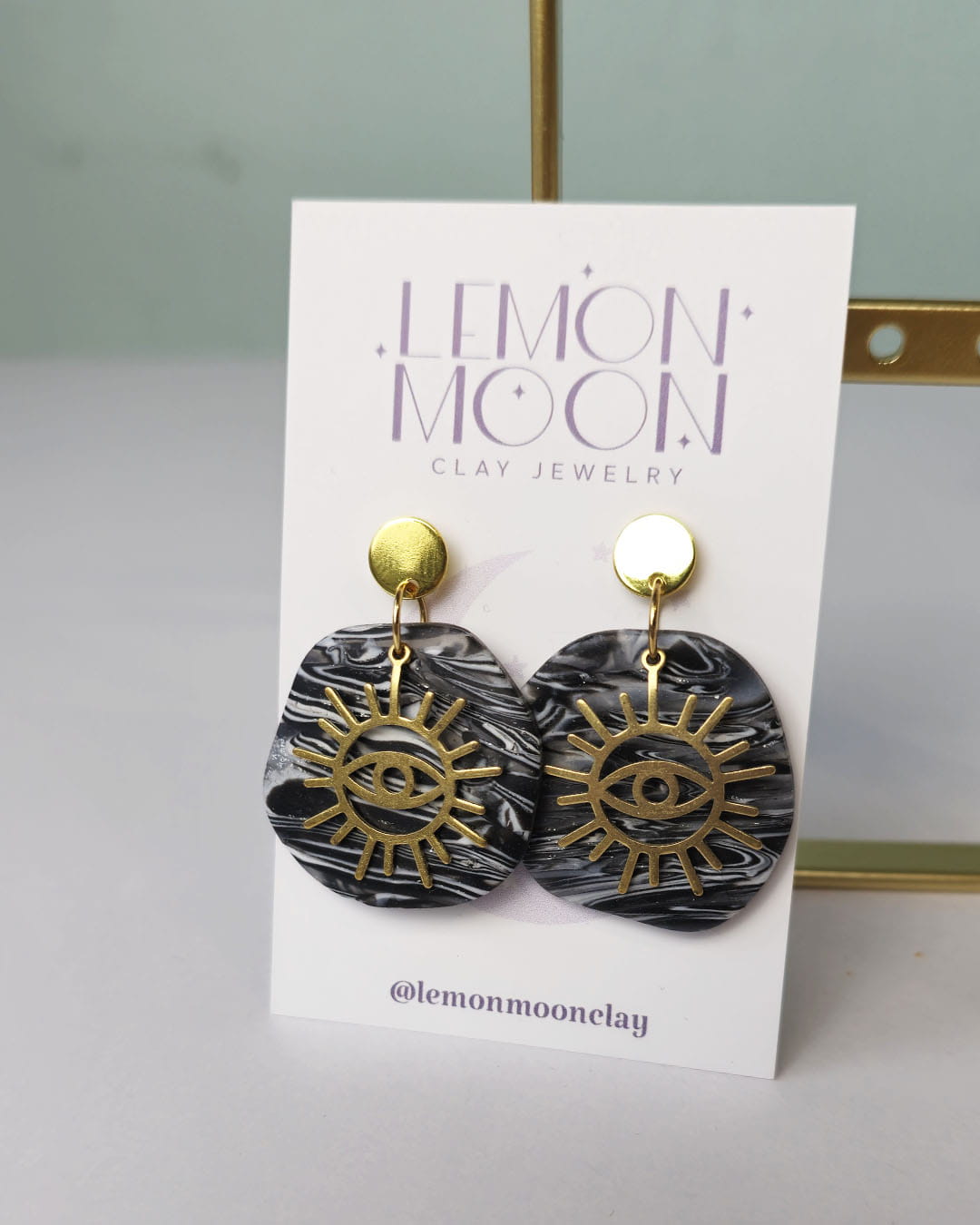 Dodaj odrobinę magi do codziennej stylizacji ! Zjawiskowe kolczyki z okiem. Czarno-srebrne kształty zostały wycięte z glinki polimerowej. Oko to element miedziany.