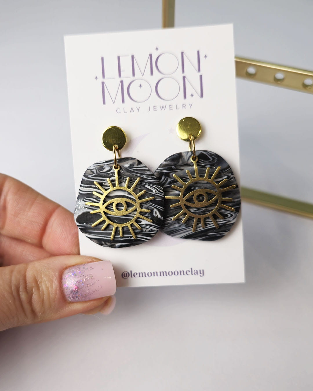 Księżyce z glinki mają srebrne drobinki, które dodają charakteru tym magicznym kolczykom.